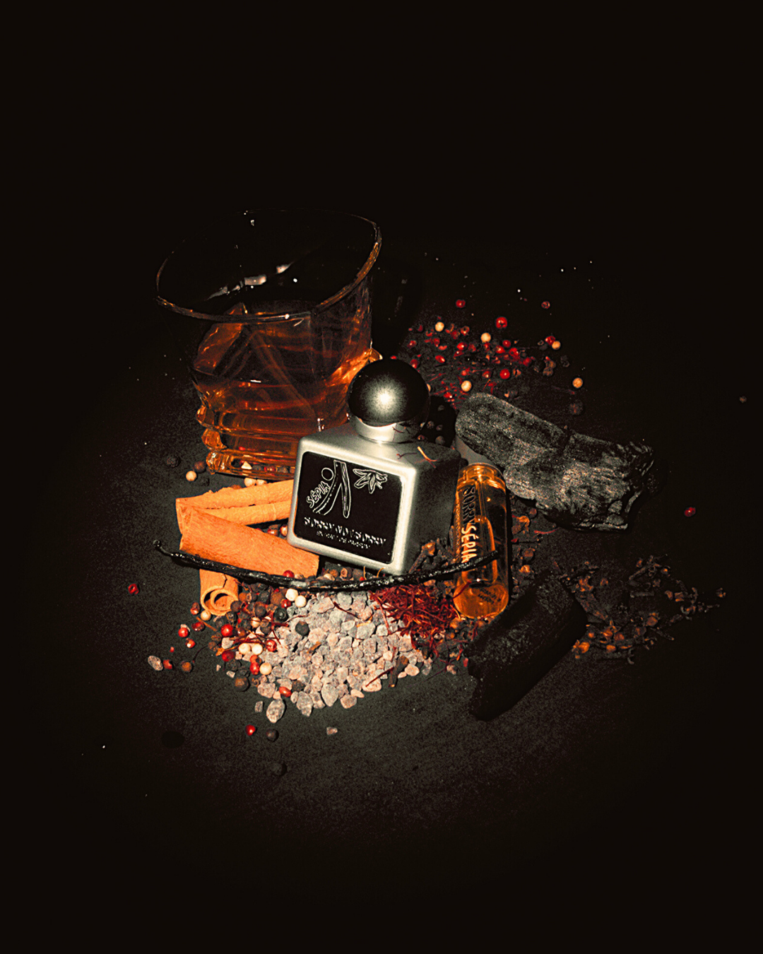 Em contraste, a resina de bétula, o couro e o açafrão trazem densidade e uma aura defumada, quase terrosa. A pimenta preta, pimenta rosa e o cravo apresentam um lado especiado, enquanto amyris traz brilho e calor.