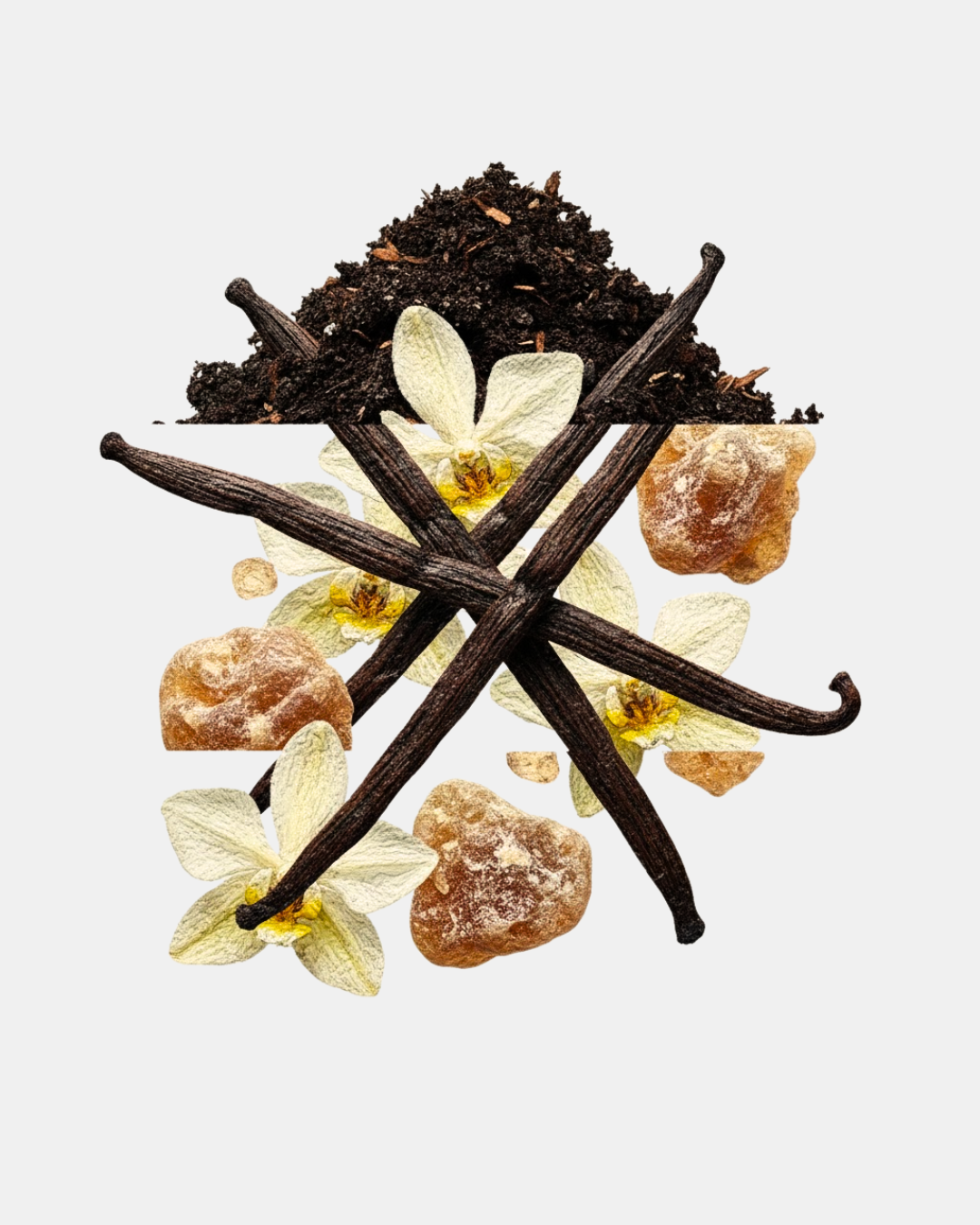 Ele encontra estrutura no cedro, mas é suavizado pela doçura complexa da baunilha natural e da fava tonka.